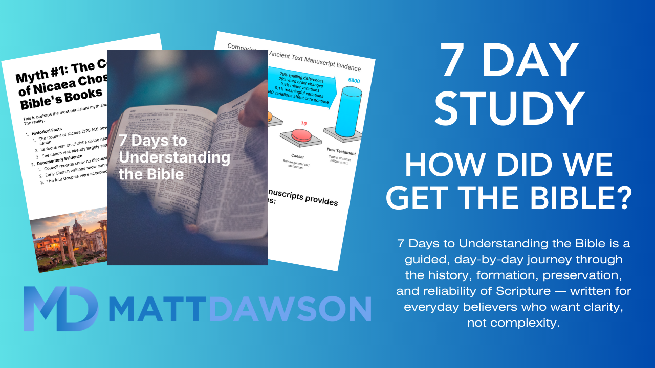 7 Days to Understanding the Bible is a guided, day-by-day journey through the history, formation, preservation, and reliability of Scripture — written for everyday believers who want clarity, not complexity.